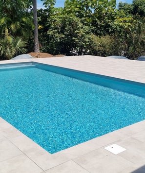 Pour vos contours de piscine le grés cérame 30*60 épaisseur 2 cm offre une sérénité dans le temps de par sa résistante à la corrosion et agent chimique comme le chlore.